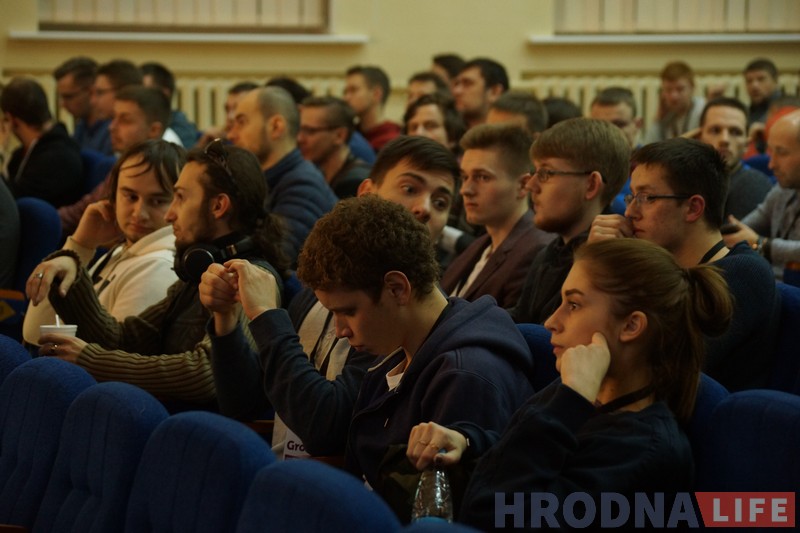 “Я бачу тут шмат нашых, – кажа Алена Лівак, дэкан факультэта матэматыкі і інфарматыкі ГрДУ. – Шмат знаёмых вакол, нават цяжка адразу вызначыць, хто з іх нашы сённяшнія студэнты, хто выпускнікі, а хто ўжо ментары. Толькі сёлета мы выпускаем 295 матэматыкаў, сярод іх 275 – праграмісты. Наш колішні студэнт, Яўген Неўгень, каторага сёння ўсе ведаюць як стваральніка MSQRD, некалі таксама пачынаў з хакатона. Пасля перамогі ён загарэўся ідэяй прывезці “Garage48” у Гродна, бліжэй да нашых студэнтаў і выпускнікоў. Увесь час мы ішлі да гэтага і рады, што зараз прымаем хакатон у сценах універсітэта”.