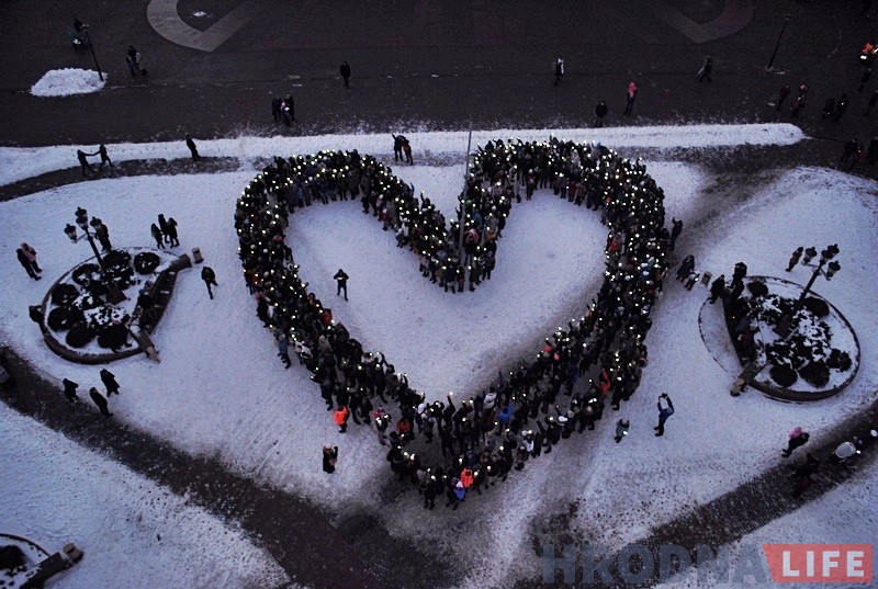 У дзень закаханых на плошчы Савецкай прайшоў флэшмоб пад назвай “Вогненнае сэрца”, у якім прынялі ўдзел некалькі сотняў гродзенцаў. Усе ўдзельнікі сталі ў вялікае сэрца і адначасова ўключылі падсветку сваіх тэлефонаў.