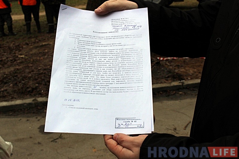 “У дзевяціпавярховым доме заварваюць смеццеправоды і робяць адмысловае месца, куды можна будзе выносіць смецце. Але робяць не каля таго дома, дзе заварылі, а каля нашага, амаль ля самага пад’езда, – кажа жыхар дома Сергей.- Навошта нам гэта? У нас ужо ёсць сваё месца для збору смецця і нам больш такіх пляцовак не трэба. Тым больш, нас пазбаўляюць дрэў і парковачных месцаў”.