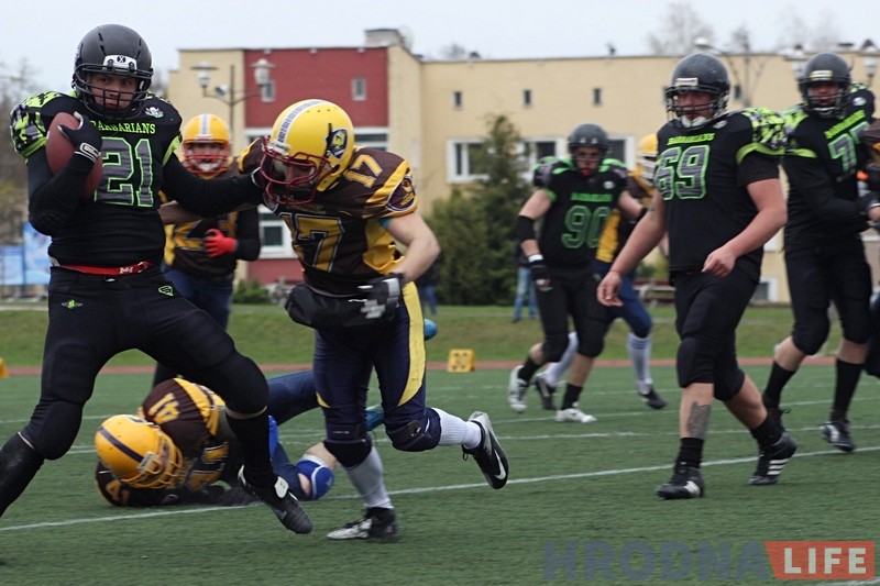 У нядзелю 9 красавіка гродзенскія “Варвары” адкрылі новы сезон і стартавалі ў міжнародным турніры – Кубку Монтэ Кларка. Паказаўшы добрую гульню, мясцовыя футбалісты з лікам 36:12 абгулялі мінскіх “Ласёў”.