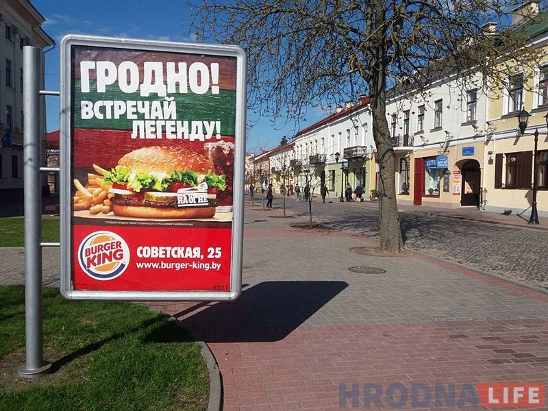 У самым цэнтры Гродна, на Савецкай, 25 у суботу 22 красавіка пачне працу першая ўстанова папулярнага амерыканскага фастфуду Burger King. Афіцыйнае адкрыццё рэстарана з прысутнасцю кіраўніцтва горада і дырэктараў сеткі фастфуду ў Беларусі запланаваны на чацвер, 27 красавіка.