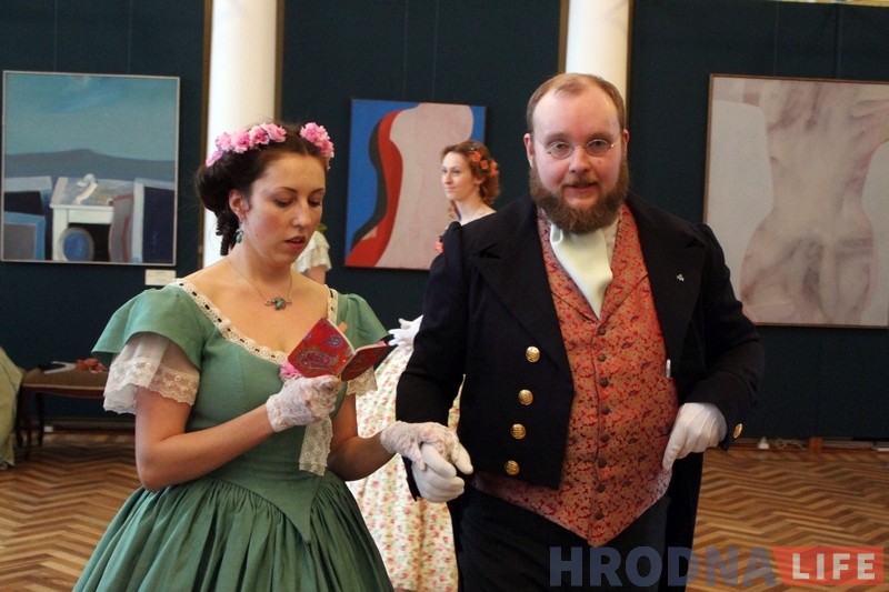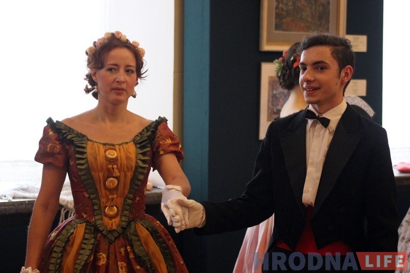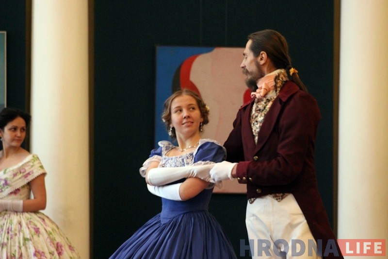 Такія мерапрыемствы праходзяць у Новым замку рэдка. Гэтым разам арганізатарам выступіў студэнт Гродзенскага каледжа мастацтваў Мікіта Іваноўскі, які не толькі прафесiйна танчыць, але і сам стварае бальныя строі.