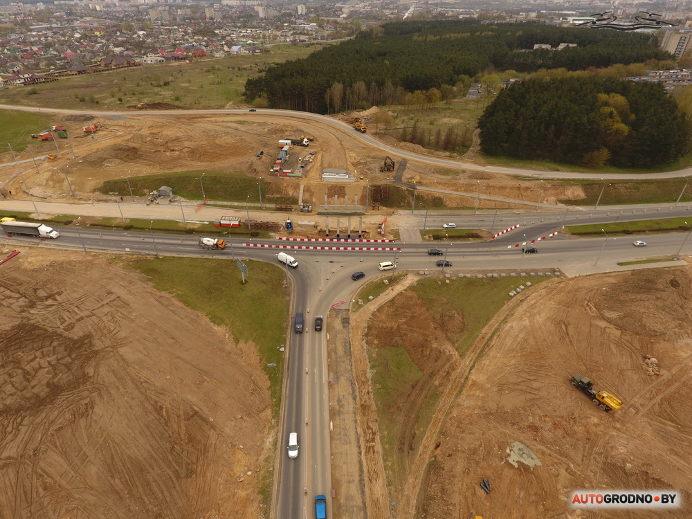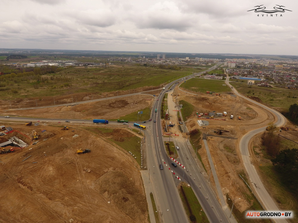 Дрон студыі 4vinta.by падняўся над будоўляй развязкі на выездзе з Альшанкі. На фотаздымках з вышыні 100 метраў відаць, як прасоўваецца дарожнае будаўніцтва. Фота апублікаваў autogrodno.by.