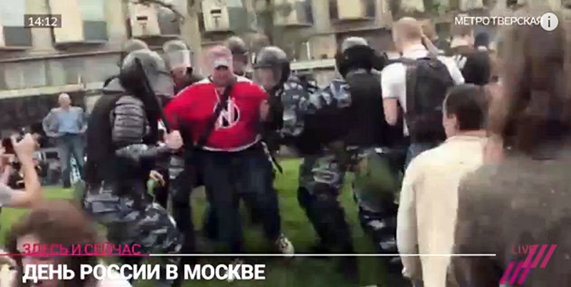 У Маскве на Цвярской вуліцы ў Дзень Расіі прайшла несанкцыянаваная акцыя антыкарупцыйнага пратэсту, арганізаваная апазыцыянэрам Аляксеем Навальным. Маскоўская паліцыя папярэдзіла, што будзе затрымліваць усіх, хто неяк пазначыць сваю палітычную пазіцыю ці падыме плакат. Як паведамляе pressball.bу, аднаго з першых затрымалі мужчыну ў джэрсі ХК “Нёман”. Мяркуючы па ўсім, фатальную ролю адыграла лацінская літара N на яго адзенні.