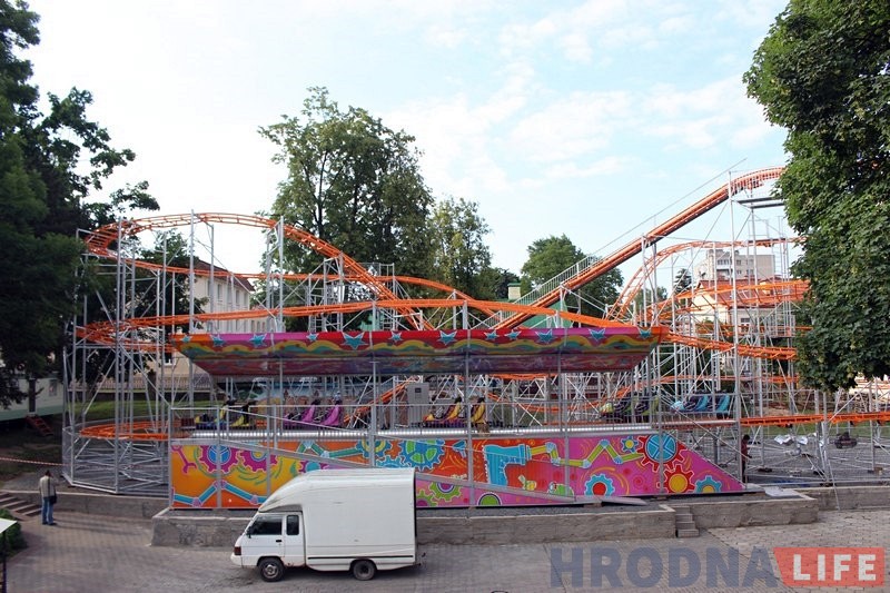 Фуры з канструкцыяй новага атракцыёну прыбылі ў Гродна з Iталii 19 чэрвеня. Усе наступныя дні спецыялісты займаліся мантажом будучых амерыканскіх горак.