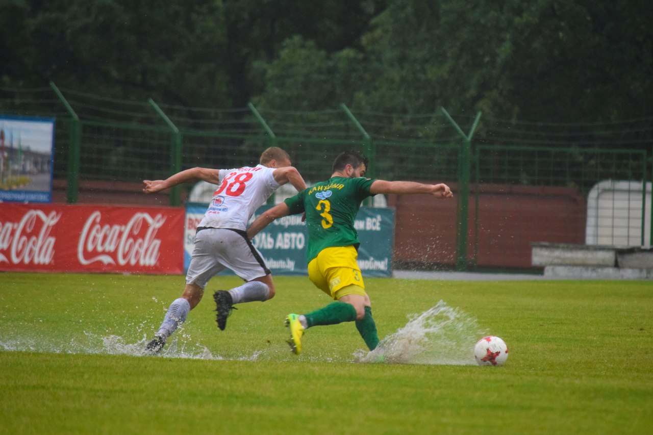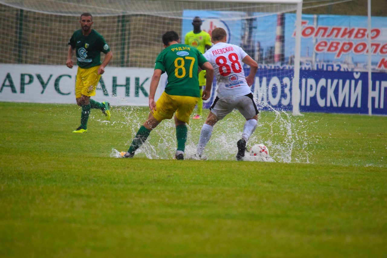 Матч у супернікаў выдаўся няпросты, пагаворвалі нават пра перанос гульні з-за лужын, якія ўтварыліся на поле пасля працяглых дажджоў. Але работнікі стадыёна ў Мазыры здолелі падрыхтаваць поле і каманды выйшлі гуляць.