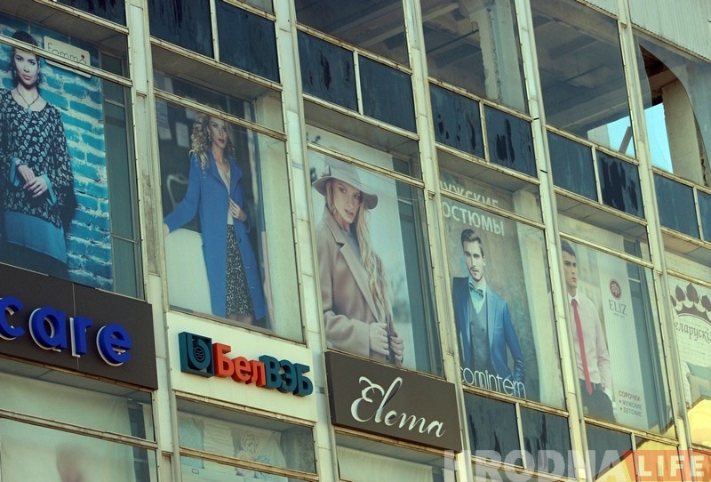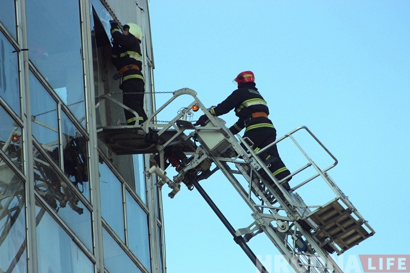 Тэрыторыя ля ўваходу ў краму была хутка ачэплена яшчэ да прыезду супрацоўнікаў МНС. Яны падняліся на вышцы і прыбралі рэшткі шкла на апошнiм паверсе гандлёвага дома.