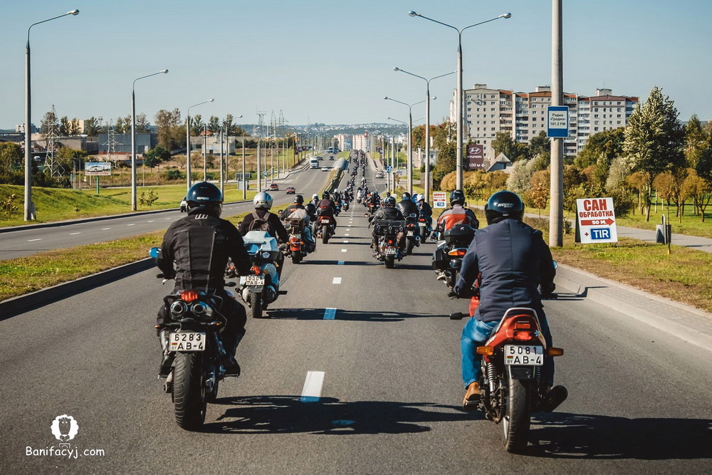 На закрыццё мотасезона-2017 у Гродне 30 верасня сабралася каля 150 байкераў, паведамляе autogrodno.by. Да гродзенскіх аматараў матацыклаў далучыліся калегі з Ліды, Ваўкавыска і Свіслачы. Месцам сустрэчы і старту мотапрабегу сёлета ўпершыню абралі наберажную правага боку Нёмана. Адсюль у суправаджэнні ДАІ калона праехала праз горад.