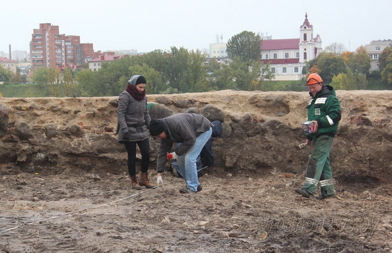 Зараз на пляцоўцы каля Старога замка з’явіліся каляровыя маркеры межаў раскопу, і праз час яны стануць своеасаблівым «бортам», які паглыбляецца ўнутр басейна. Дапамагаць супрацоўнікам археалагічнага аддзела пад кіраўніцтвам Наталлі Кізюкевіч будуць будаўнікі.