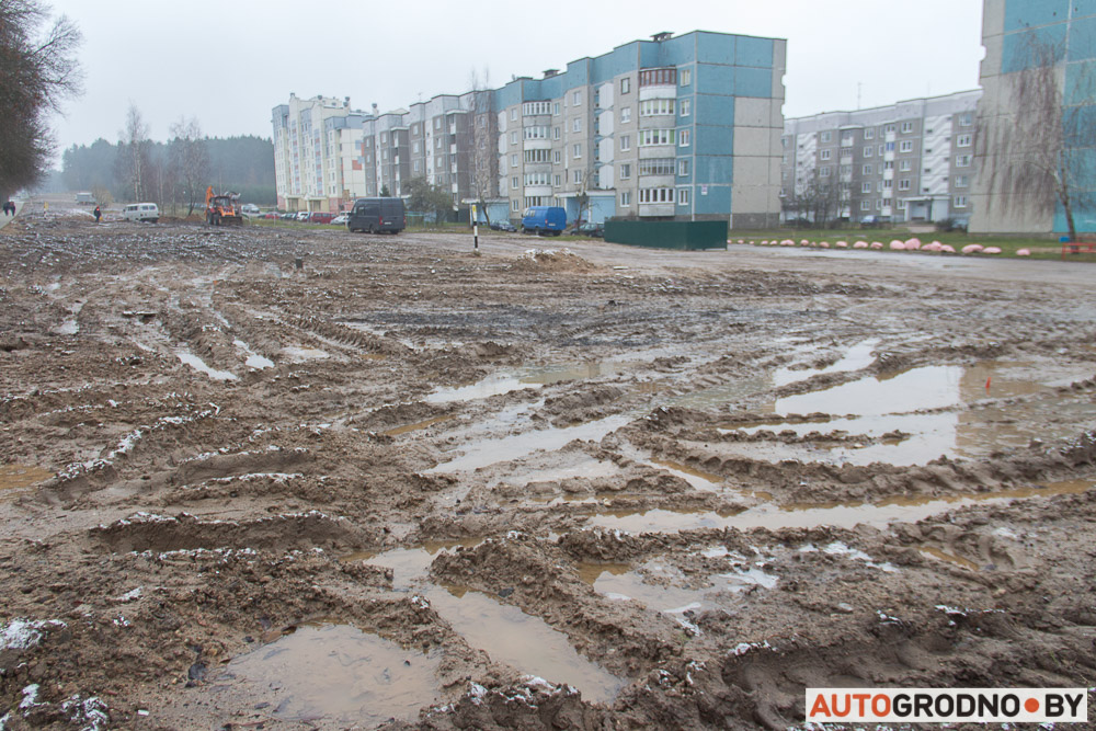 “Пры з’ездзе з грунту, натуральна, шыны тэхнікі не мыліся. У выніку за лета, які б ні быў, але ўсё-ткі асфальт, пакрыўся прыстойным пластом пяску. Улетку пры праездзе аўтамабіляў па дадзеным участку падымаўся жудасны пыл, ну ды добра, трывалі – будуюць ж для нас. Чакалася, што пасля заканчэння работ усё прывядуць у парадак. Але, па ўсёй бачнасці, ніхто нават і не збіраецца гэтага рабіць. Дажджы размылі ўвесь гэты бруд, і ён разнесся па ўсім двары. Затым вышэйзгаданы ўчастак выкарысталі ўжо для складавання пліткі для тратуара, які будуецца, а тэхніка працягвае разносіць бруд на дарозе. Бо шлях у двор ляжыць выключна па праезнай частцы, з прычыны адсутнасці тратуара, каб трапіць дадому, жыхары вымушаныя прайсці квэст “дайдзі дадому чыстым”. У цёмны час сутак задача ўскладняецца з-за адсутнасці асвятлення на дадзеным участку. Пасля звароту ў ЖЭС, невялікі ўчастак дарогі быў усё ж сяк-так падмецены, але гэтага хапіла толькі на некалькі гадзін”.