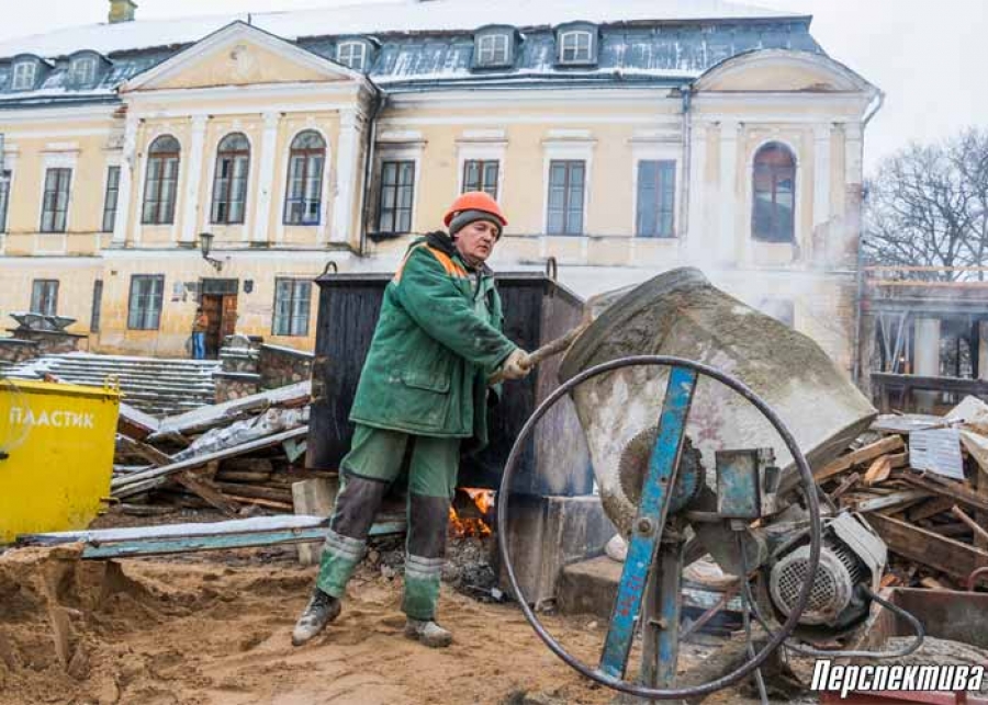 Што тычыцца левага флігеля – то там з’явіўся новы дах. Гліняная чарапіца максімальна набліжана да той, што некалі была на будынку. Завершана ўстаноўка новых вокнаў. Зараз унутры будаўнікі заліваюць сцяжкі падлог, робяць унутраную разводку ацяплення.