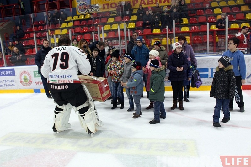 У суботу 6 студзеня гродзенскі «Нёман» традыцыйна правёў дабрачынны матч, які стаў падарункам як для аматараў хакея ў Гродне, так і для дзяцей з Панямуньскага дзіцячага дома.