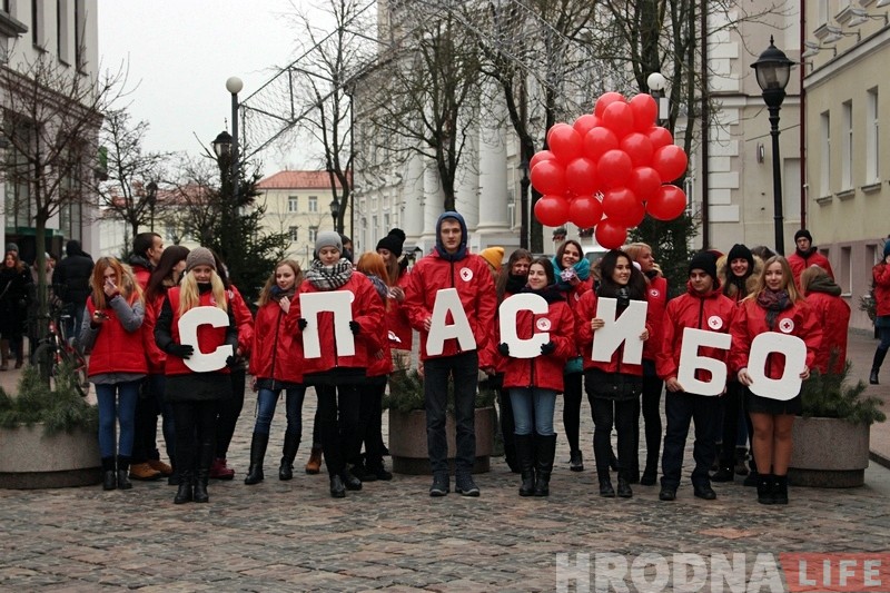 У міжнародны дзень “дзякуй”, які адзначаецца 11 студзеня, у Гродне абласная арганізацыя Чырвонага Крыжа правяла незвычайную акцыю, з дапамогай якой падзякавала валанцёрам і гараджанам за аказаную дапамогу на працягу мінулага года.