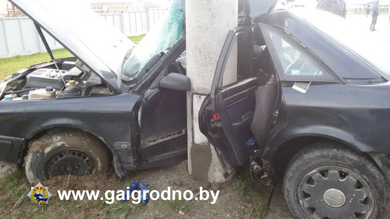 На з’ездзе на вуліцу Славінскага аўтамабіль занесла на левую абочыну. Пасля ўдару аб бардзюр «Аўдзі» адкінула ў мачту асвятляльнай апоры. Удар прыйшоўся ў левую частку аўтамабіля. Кіроўца загінуў.