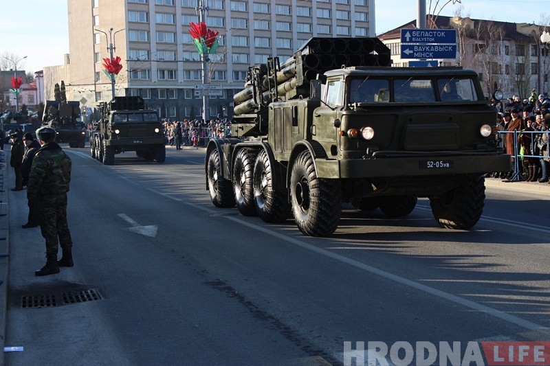 У парадзе ваеннай тэхнікі было задзейнічана 25 адзінак ваеннай колавай тэхнікі Гродзенскага гарнізона. Упершыню над горадам парадным строем праляцелі шэсць самалётаў.