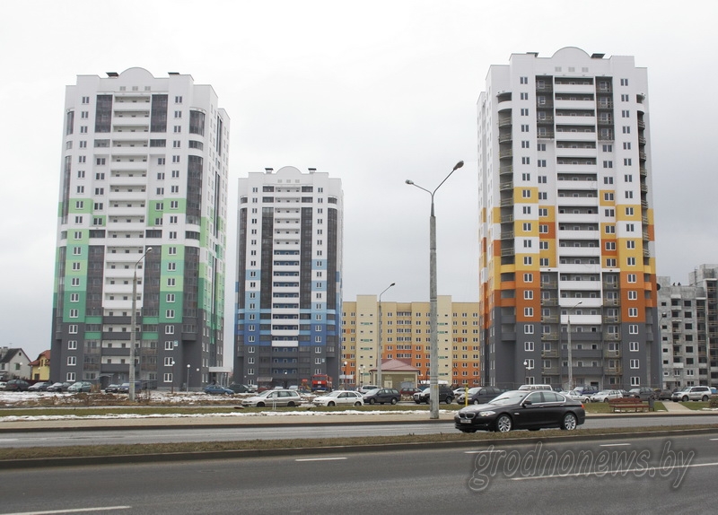 Архітэктары “Гроднажылбуда” пайшлі на эксперымент па каляровым рашэнні забудовы: тут спалучаецца халодная гама з цёплай, дынаміка колераў па вертыкалі.