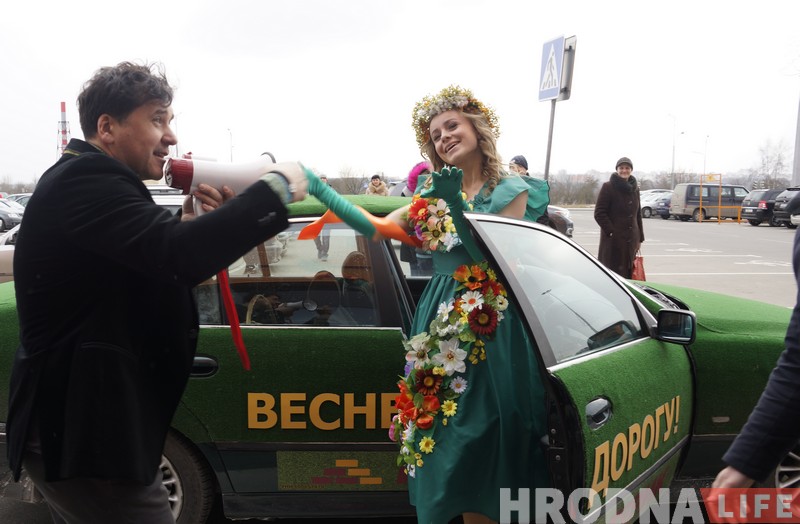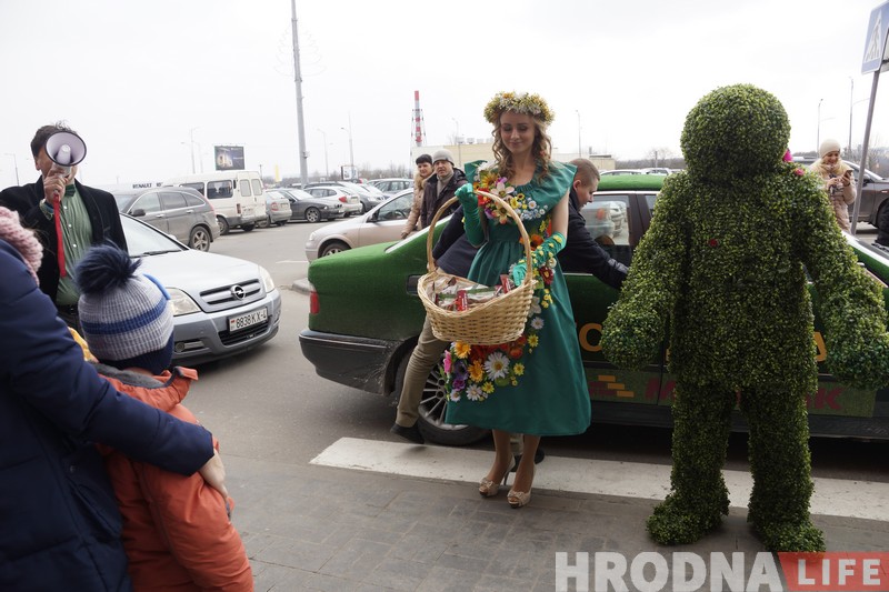 Чаму вясна прымчалася ў горад раней, чым скончылася зіма, стала ясна адразу. Па-першае, на аўто можна і наднаціснуць на газ, а па-другое, у садовым павільёне гіпермаркета кветкі квінеюць ужо поўным ходам. Так што Прыгажуню-вясну чакаў ва ўсіх сэнсах цёплы прыём. Яна ў адказ дзякавала гродзенцам і раздавала каму ўсмешкі, каму падарункі. Нават тыя, хто зайшоў у краму па справах, заставаліся паўдзельнічаць у святочных конкурсах і паназіраць за прадстаўленнем.