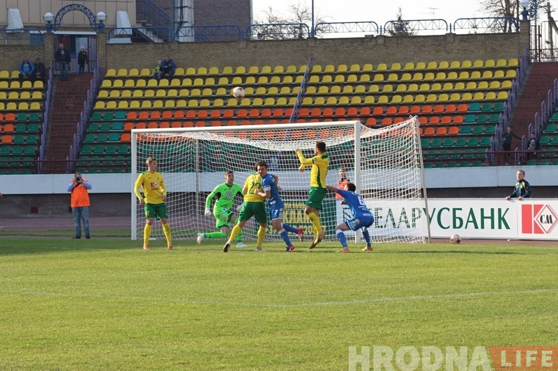 “Нёман” па-гаспадарску пачаў актыўна. Першы небяспечны момант стварыў на 7-й хвіліне, калi Квашук добра прабіў штрафны з 40 метраў. Але галкіпер гасцей здолеў выцягнуць мяч.