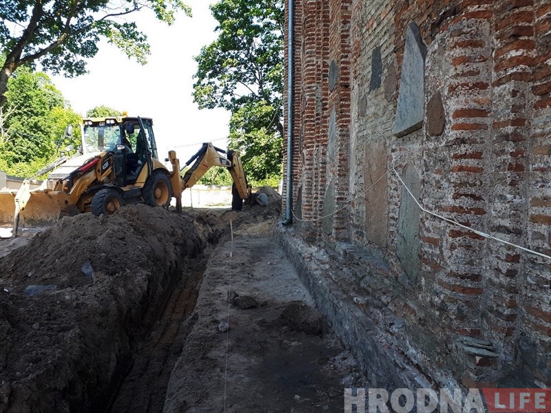 Вядома, што працы на тэрыторыі храма ідуць пад наглядам кіраўніка навуковага праекта. Адказная арганізацыя – УКБ Гродзенскага аблвыканкама.
