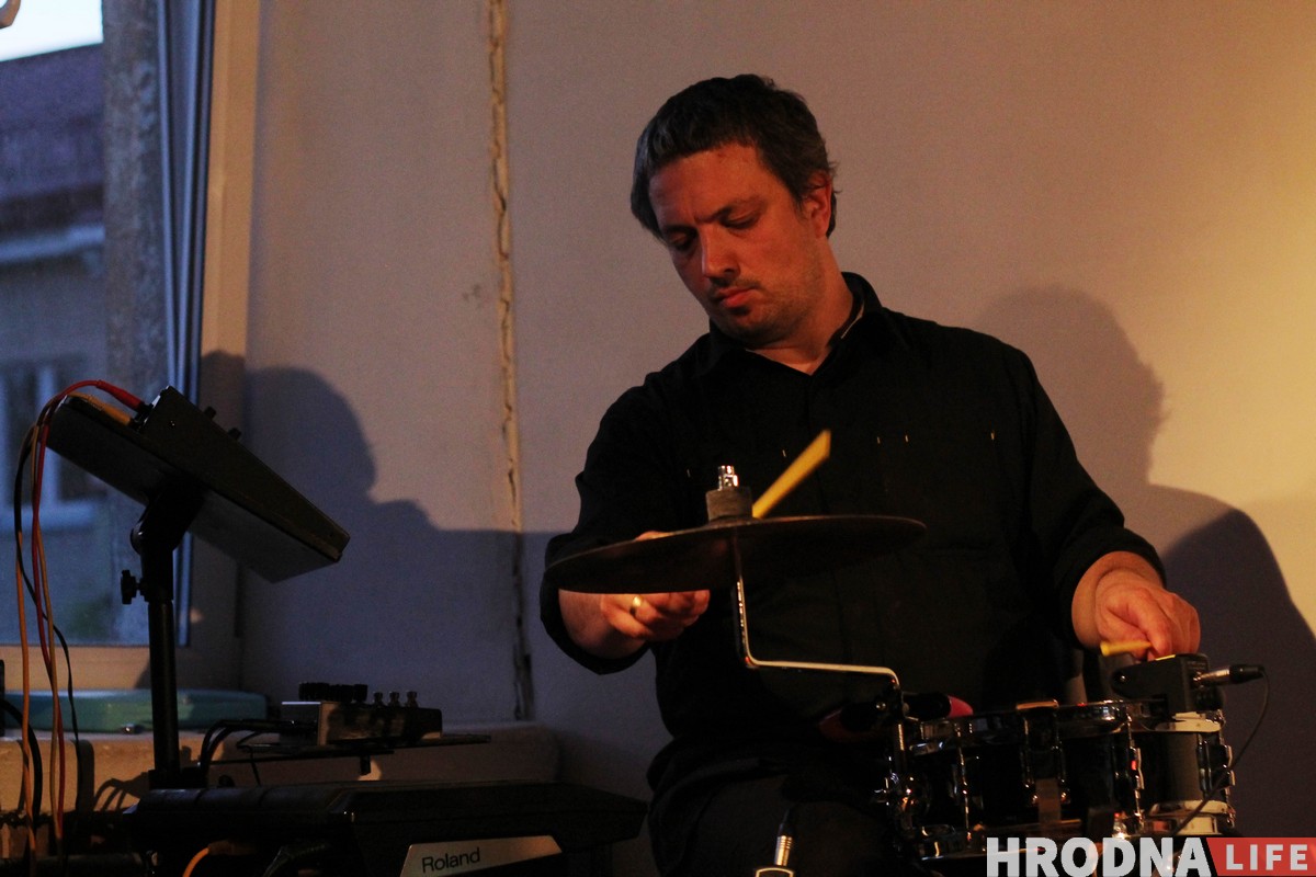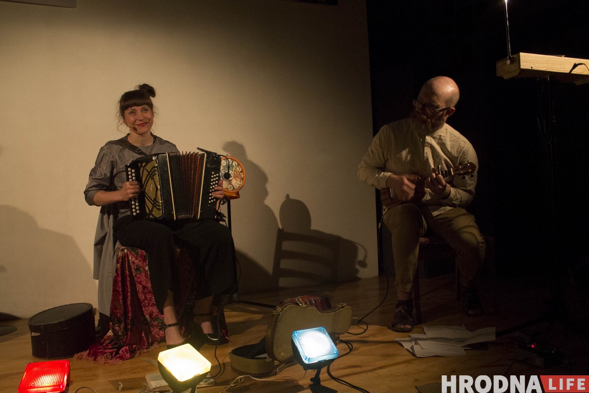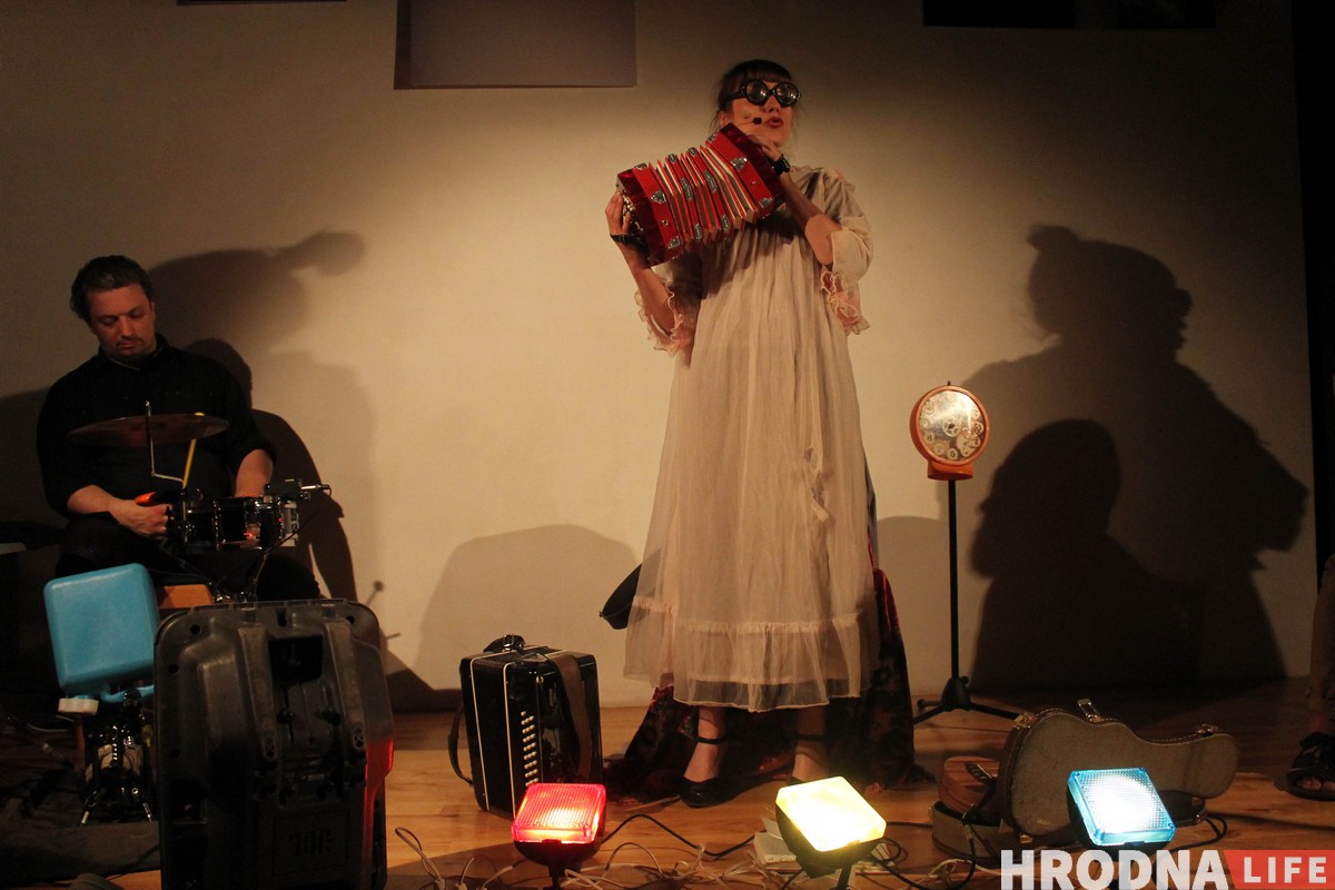 “Мікра-кабарэ” з трох музыкаў – Святланы Бень, Арцёма Залескага і Арцёма Астрашэўскага – гіпнатызавала гродзенцаў дзівосным інструментам тэрменавоксам і сваімі іранічнымі тэкстамі. Канцэрт чальцоў “Серебряной свадьбы” прайшоў у Гродне 12 мая.