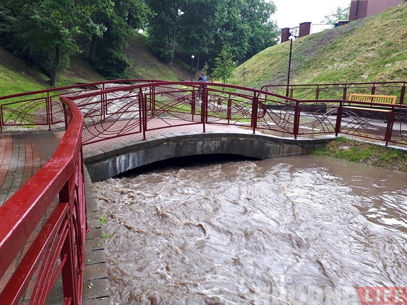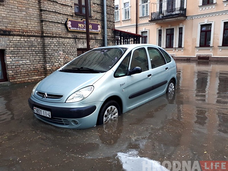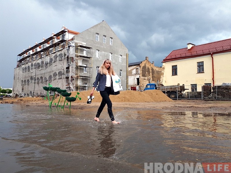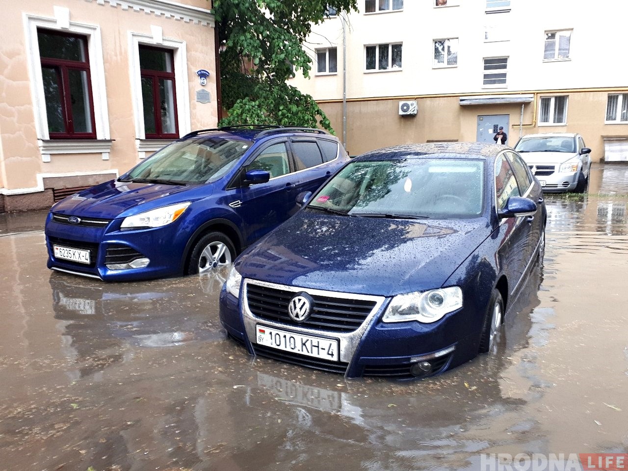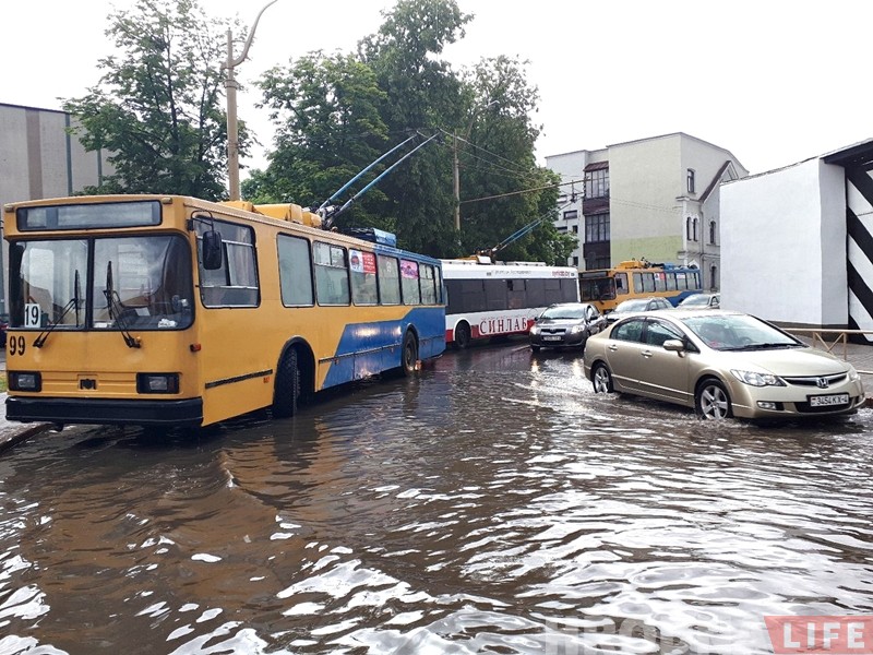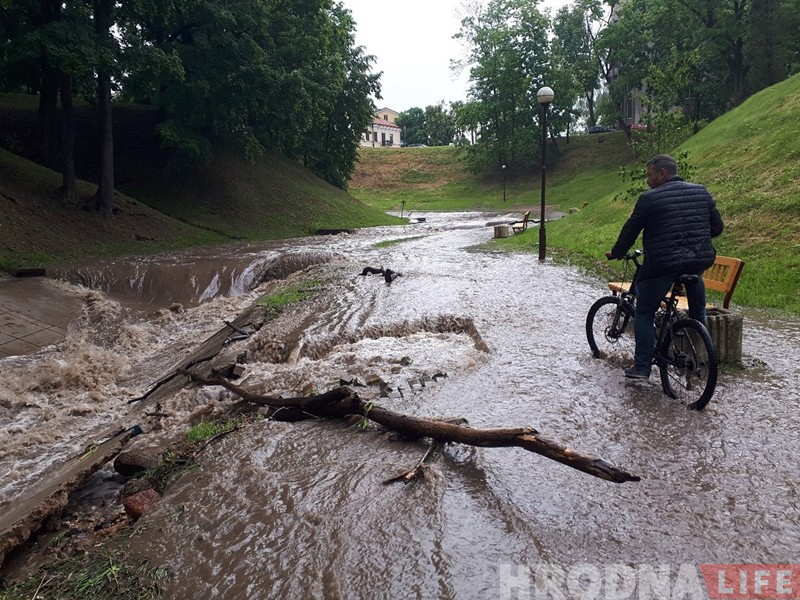 Першы моцны дождж у маі зноў паказаў гродзенцам праблемныя месцы горада. Былі затопленыя цэнтральныя вуліцы. Рух грамадскага транспарту быў ускладнены.