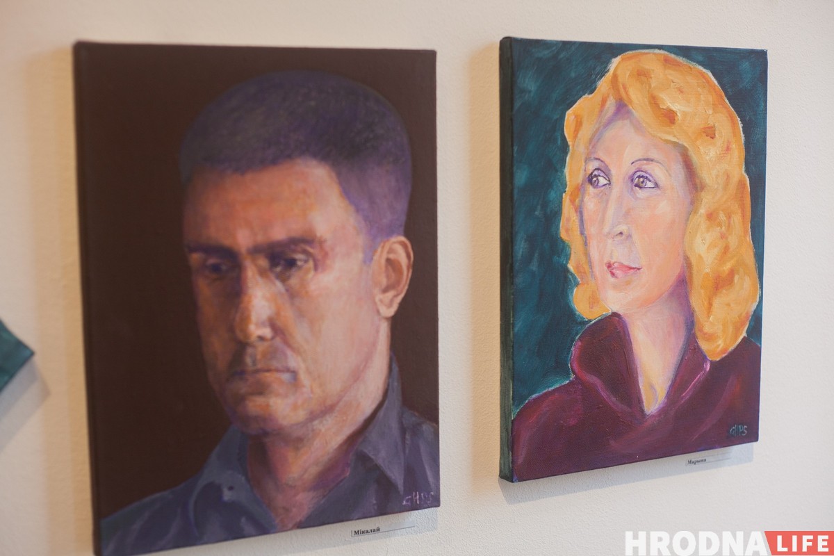 Сярод 47 партрэтаў можна знайсці Алеся Дзянісава, Януша Паруліса, Сяргея Грыневіча. У назве выставы “Божа, навучы нас сядзець спакойна” ёсць і нешта задумліва-філасофскае, і набалелае для мастакоў. Паспрабуйце пасядзець тры гадзіны, пазіруючы! І паспрабуце ўгаварыць мадэляў не варушыцца.