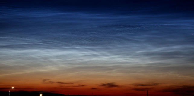 8 ліпеня ўвечары над гродзенскім небам можна было назіраць рэдкую атмасферную з’яву – серабрыстыя аблокі. Узнікаюць яны ў мезасферы на вышыні 80-85 км над зямной паверхняй і таму з’яўляюцца самымі высокімі аблокамі ў атмасферы, піша Гродзенская праўда.