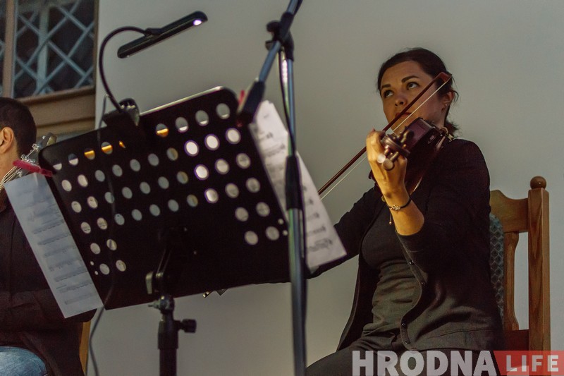 На Кінэмо ў Гродне напаўняла вечар гучаннем трыо выканаўцаў Five Storey Ensemble -Вольга Падгайская, Анастасія Карпенка, Віталь Эппаў.
