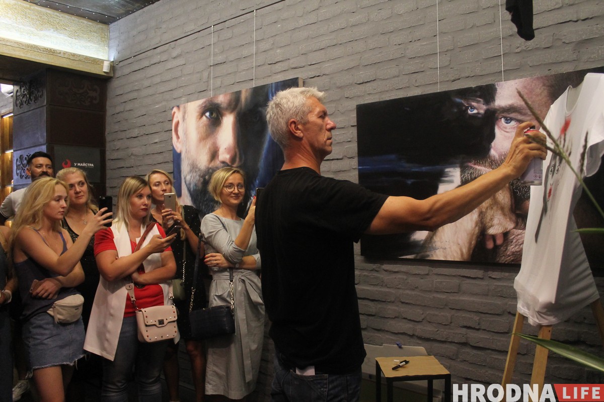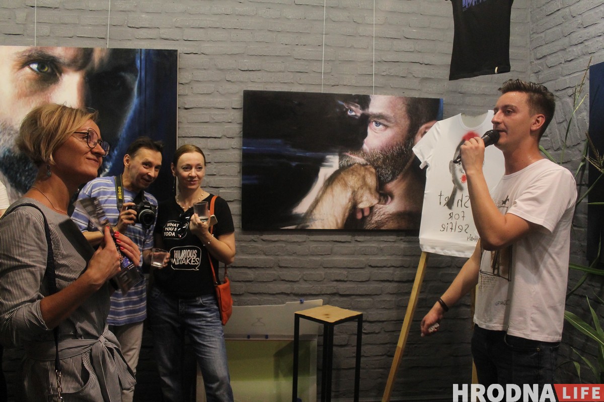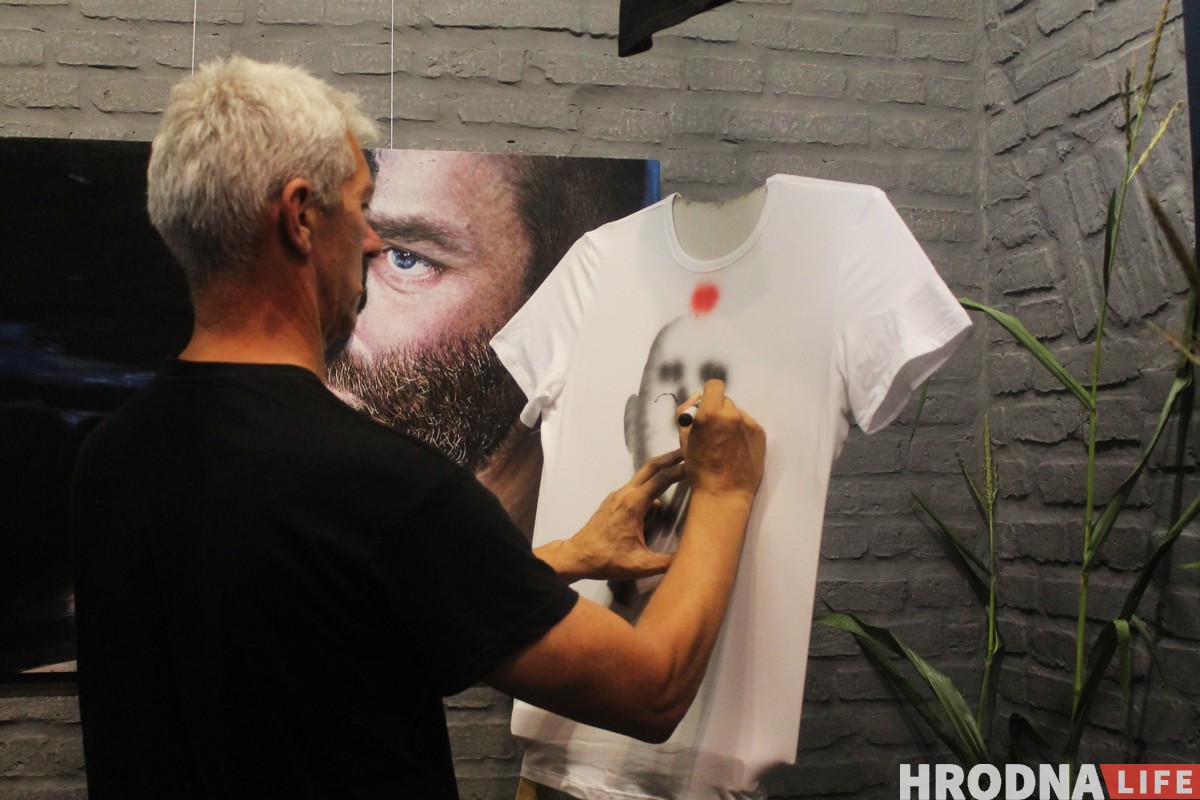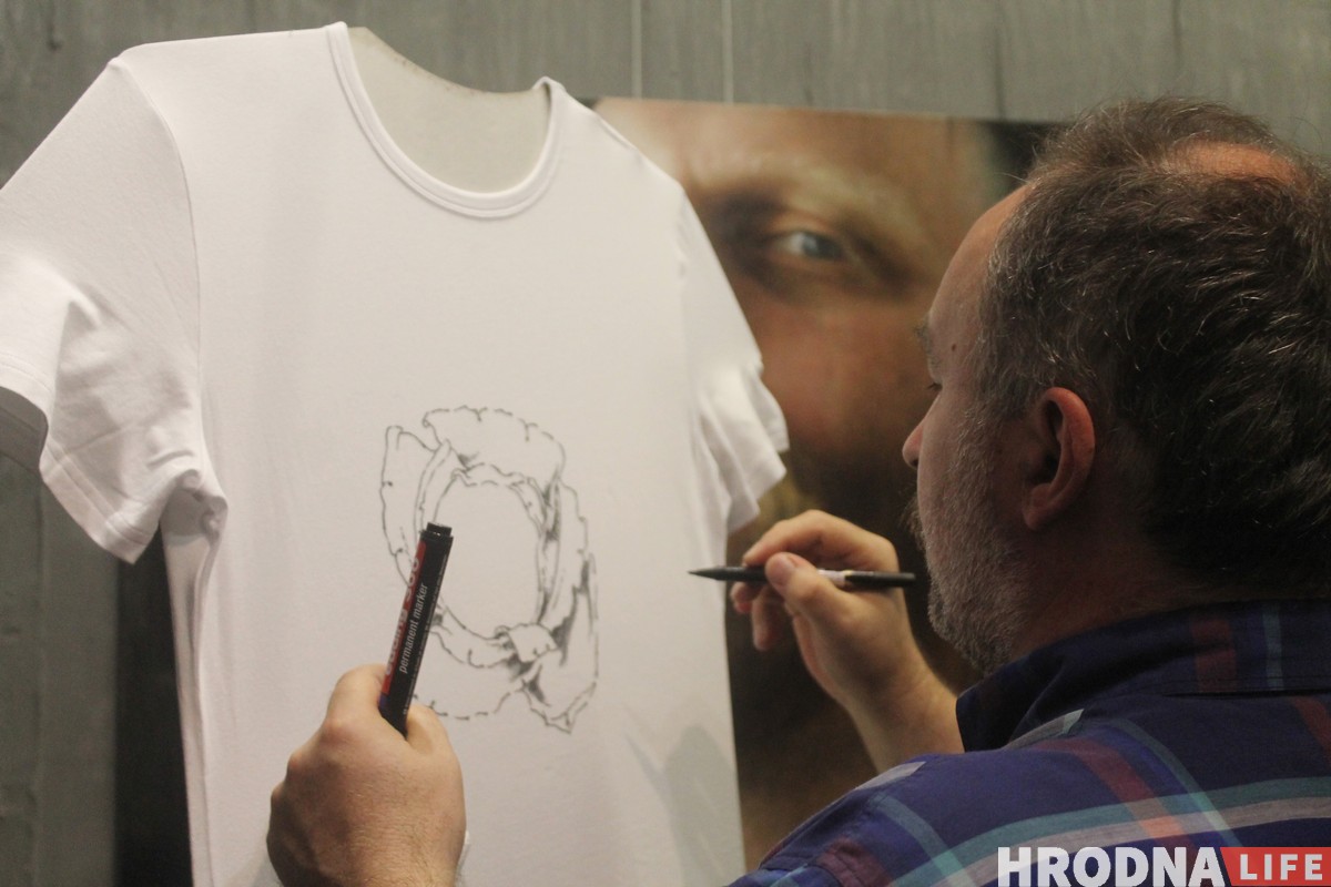 “Апошнім часам папулярныя цішоткі з вышыванкай, вышымайкі. Майка – гэта заўсёды пасыл чалавецтву. Ён бывае палітычным, эстэтычным – розным”, – кажа Сяргей Грыневіч на прэзентацыі. 2 жніўня галерэя прэзентавала цішоткі з выявамі трох гродзенскіх мастакоў – Сяргей Грыневіча, Юрыя Якавенкі і Валянціны Шобы.