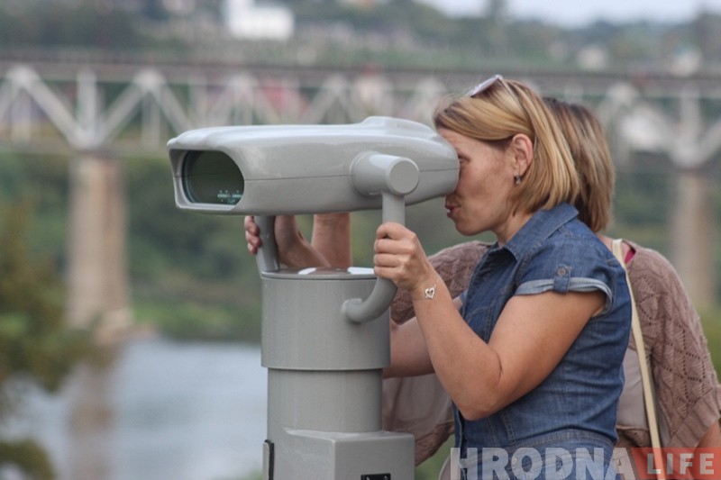 Напярэдадні Дня горада на назіральнай пляцоўцы на вуліцы Дарвіна ўсталявалі аглядны бінокль. З дапамогай яго з левага берага Нёмана можна ў дэталях разглядзець стары горад.