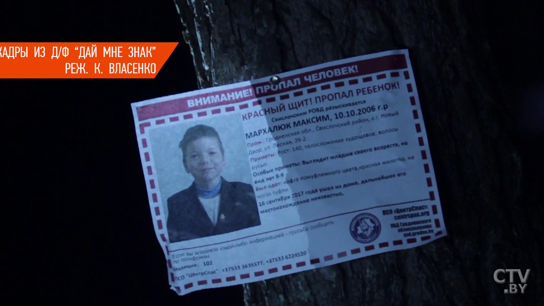Аўтарам сцэнара, рэжысёрам, а таксама чалавекам, які цалкам вырашаў усе тэхнічныя пытанні, стаў студэнт чацвёртага курса БДАМ Кірыл Уласенка. Малады чалавек раскрывае падрабязнасці аперацыі па пошуку Максіма Мархалюка. 11-гадовы хлопчык знік у Белавежскай пушчы крыху больш за год таму, і да гэтага часу яго лёс невядомы.