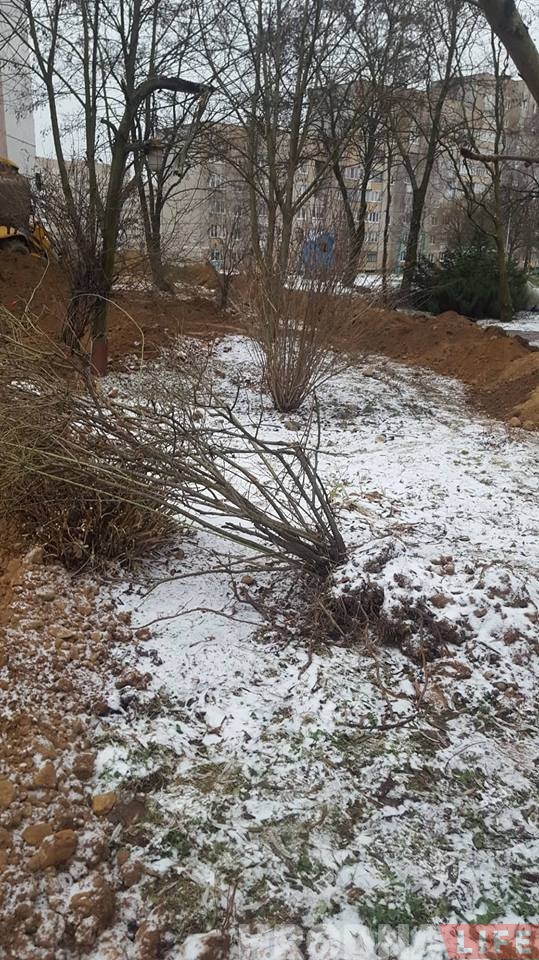 Адразу некалькі гродзенцаў звярнуліся ў рэдакцыю Hrodna.life з адной праблемай: ва ўзорным гарадскім двары на Індурскай шашы пракладваюць камунікацыі. Дагледжаную зялёную пляцоўку з арт-кампазіцыямі паўскопвалі бульдозерам. Частку кустоў і дрэў зламалі, а частку засыпалі зямлёй.