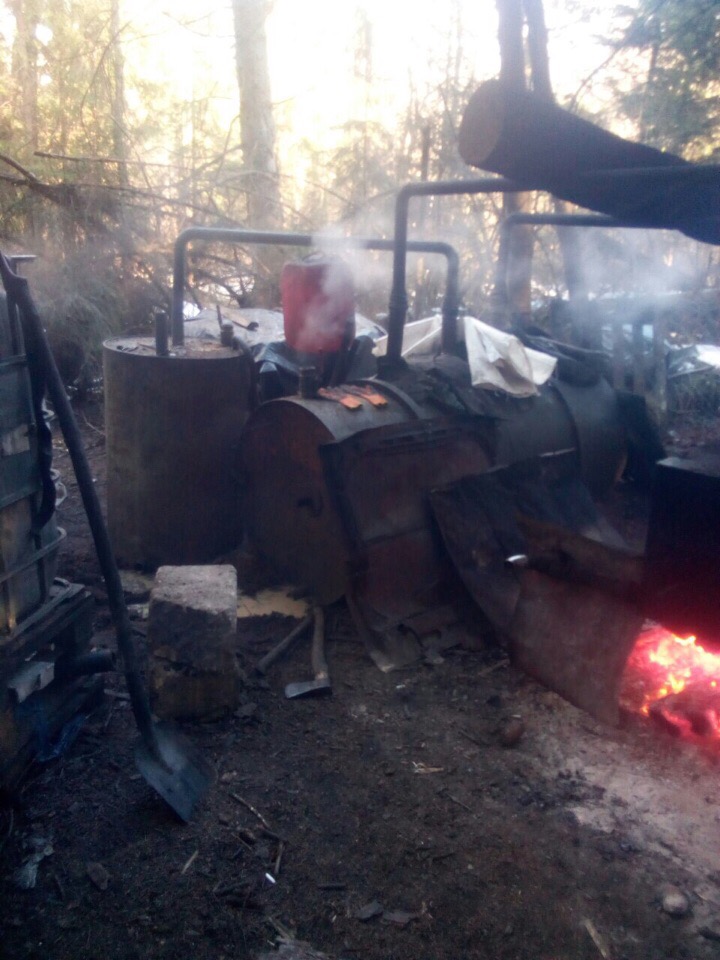 Завод знаходзіўся ў лясной глушы, у бязлюдным месцы. Выдала мужчыну сырая адмерзлая зямля: сляды ад яго аўтамабіля былі дакладна бачныя. Акрамя таго, гэты лес ужо быў знаёмы праваахоўнікам – год таму побач затрымалі іншага самагоншчыка.