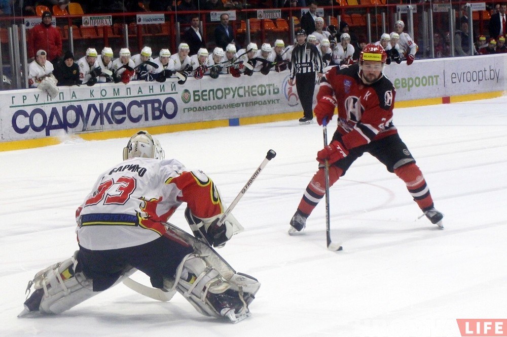 У адсутнасці лідэраў каманды, якія адправіліся на матч супраць мінскага «Дынама», у Гродне 26 лютага падапечныя Сяргея Пушкова апынуліся мацней за «Гомель». Асноўны час матчу скончыўся з лікам 3:3. Зыход сустрэчы вырашылі буліты, вырашальную шайбу закінуў Коршунаў.