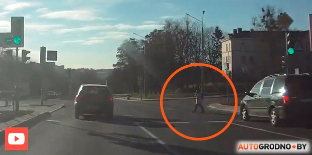 Насуперак усім законам логікі і ПДР, дзіця не пераходзіла праезную частку на свой дазваляльны сігнал святлафора. Дзяўчынка ўпэўнена пайшла, калі для яе загарэўся чырвоны сігнал.