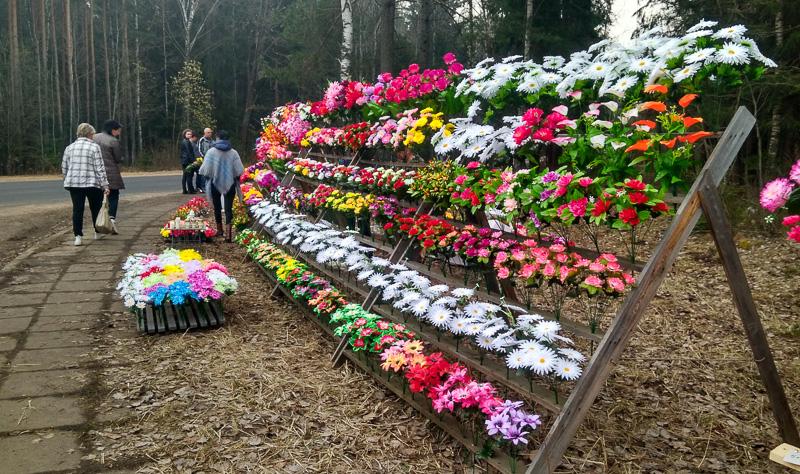 Па падліках эколагаў, штогод на могілках краіны аказваецца каля мільёна штучных руж, гваздзікоў і хрызантэм, на куплю якіх беларусы трацяць каля паўмільёна даляраў.