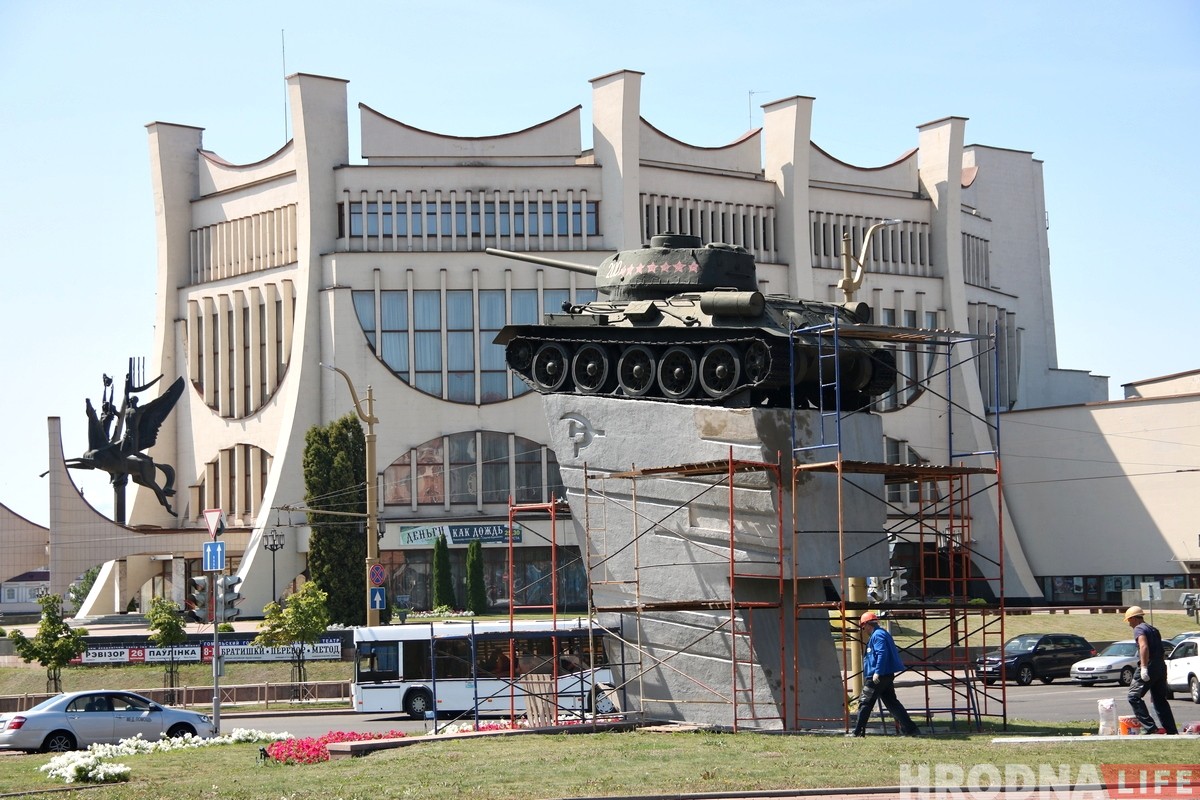 З пачатку жніўня пачаўся рамонт пастамента помніка-танка на Савецкай плошчы. Рабочыя латаюць расколіны і абнаўляюць надпісы. Пасля рамонту запрацуе начная падсветка помніка.
