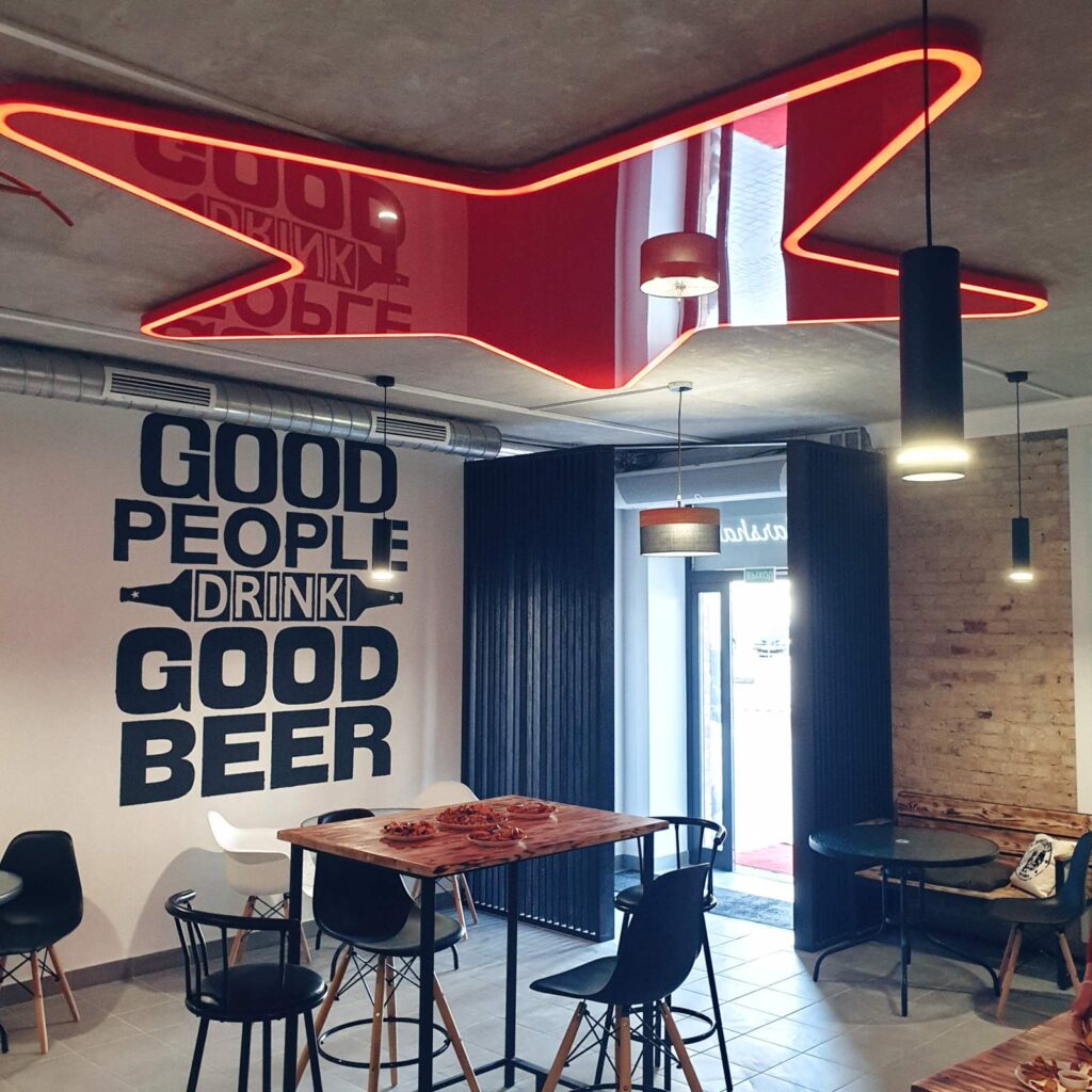 У бары будзе каля 60 пасадачных месцаў, з іх 30 – на летняй пляцоўцы. У памяшканні ёсць сталы як на два чалавекі, так і на вялікую кампанію, і дзве барныя стойкі.