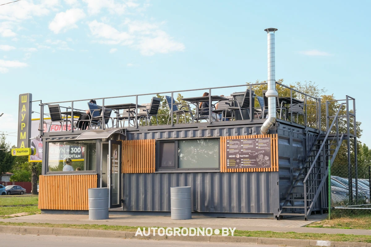 «КартКафе» працуе непадалёк ад выезду на Зарыцу. Паблізу няма іншых устаноў, таму шаўрмічная карыстаецца попытам сярод кіроўцаў. «Мы прымаем замовы па тэлефоне і, пакуль аўтамабіліст да нас едзе, мы ўжо прыступаем да працы», — распавяла «АўтаГродна» заснавальніца Марыя.