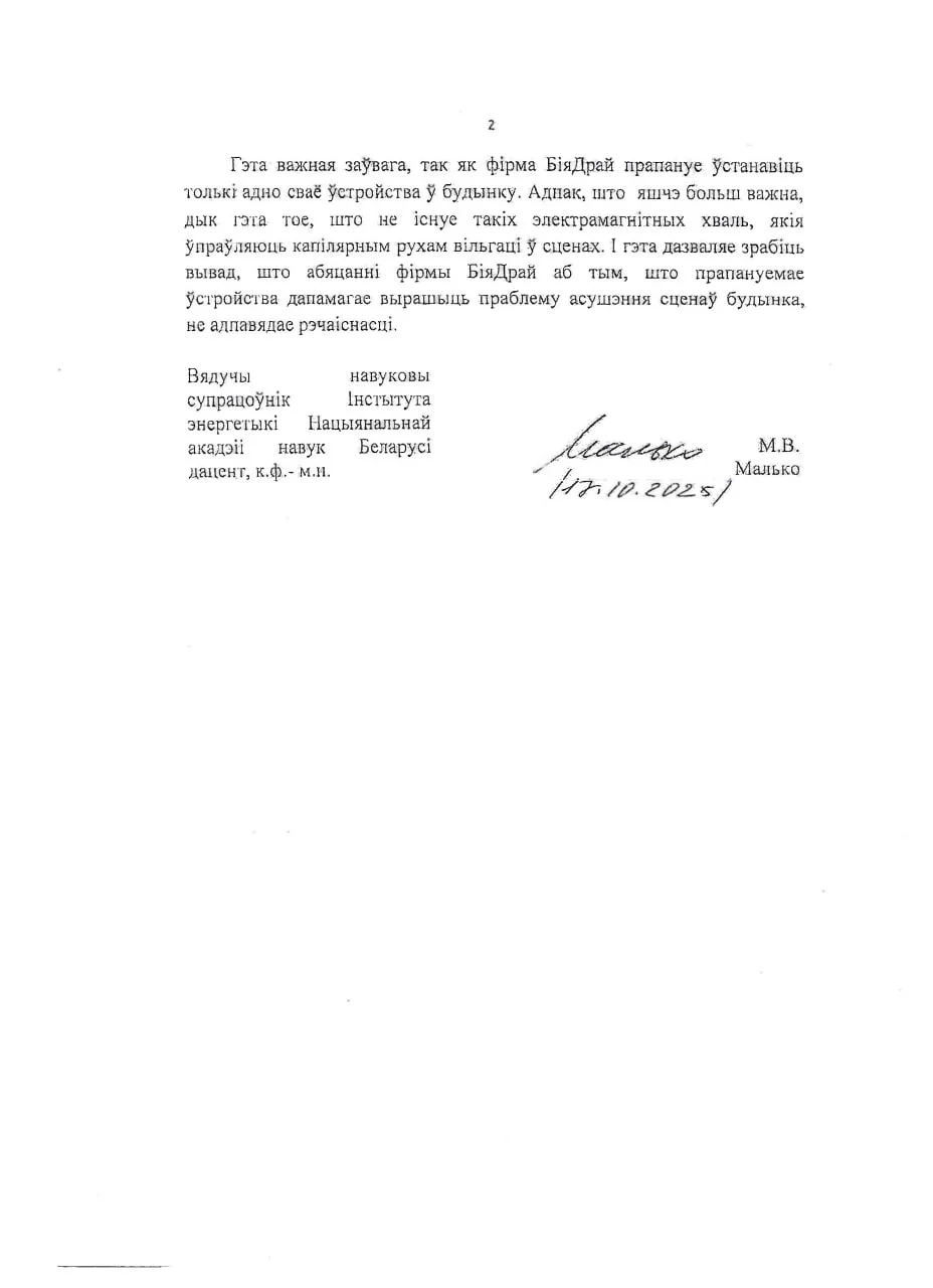 «Да Беларусі дабраліся міжнародныя махляры BioDry, яны выкарыстоўваюць помнікі архітэктуры для таго, каб прасоўваць сваю “цудоўную скрыначку”, якая быццам бы мусіць перамагчы ўвільгатненне сцен», — пісалі аўтары «Спадчыны» у жніўні.
