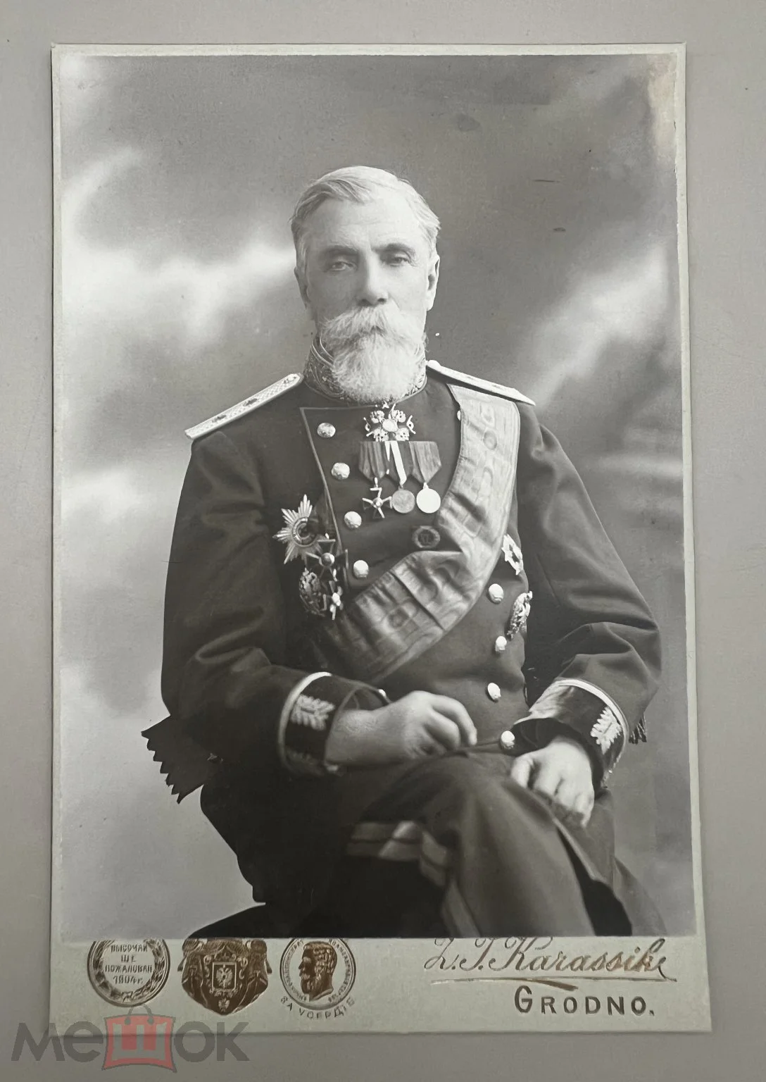 У які год сфатаграфавалі стацкага саветніка — дакладна невядома. Як піша Маркіна, здымак зрабілі «ў знакамітым фотаатэлье Карасіка да рэвалюцыі». Пра гэта таксама сведчыць подпіс пад фота — ініцыялы фатографа і яго рэгаліі, пералічаныя на адваротным баку здымка.