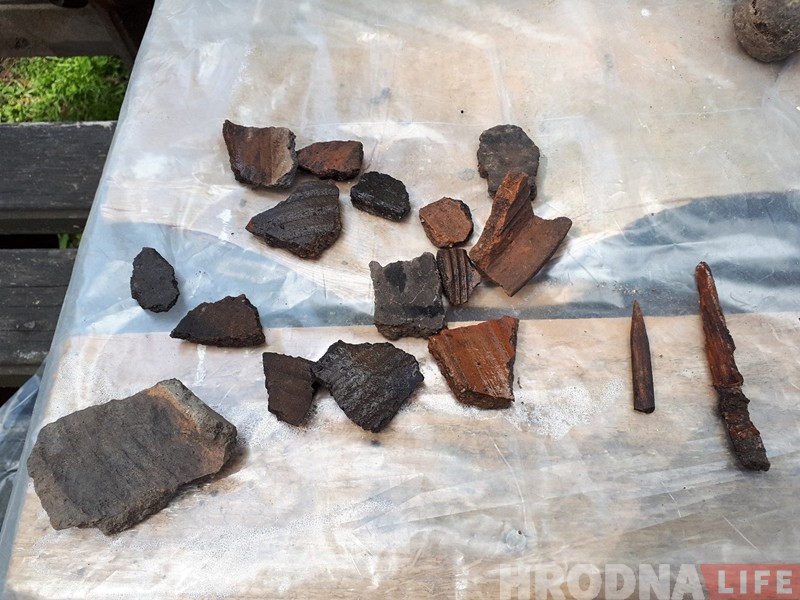 “Выйшла ўсё наадварот. Трохі папрацаваўшы ў перамяшанай зямлі і траншэях, мы зрабілі некалькі знаходак, у тым ліку знайшлі адно пахаванне. Знаходкі, гэта ў асноўным розная кераміка з лінейным арнаментам, прыкладна позняе сярэднявечча. Ёсць і касцяное вастрыё, якое можа адносіцца да жалезнага веку”.