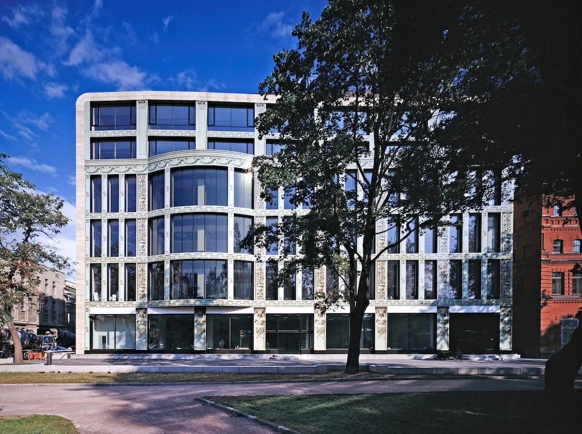 Былыя прамысловыя будынкі ў Пецярбургу рэканструявалі інакш. Там пакінулі каркасы, але зрабілі зусім новыя фасады і дабудавалі паверхі. Гэта ўжо бліжэй да падыходу Сямашкі, але ёсць нюанс – фасады засталіся плоскімі і шклянымі, а дэкор “пад даўніну” ў першым выпадку і рэпрадукцыі фрагментаў карцін у другім намаляваны на шкле метадам шаўкаграфіі. З гродзенскім Домам быту былы цэх, а цяпер БЦ “Лангензіпен” радніць яшчэ і размяшчэнне – удалечыні ад вуліцы, за дрэвамі і іншымі будынкамі.
