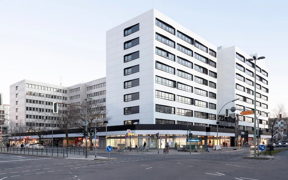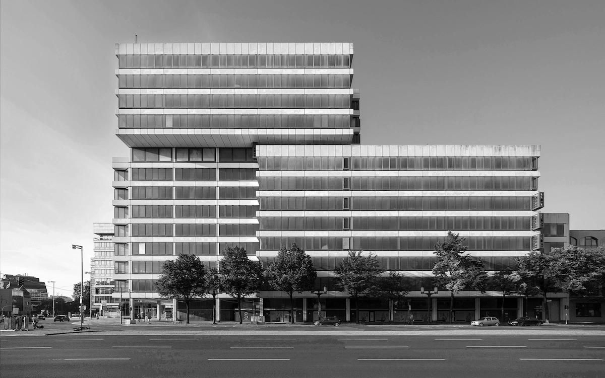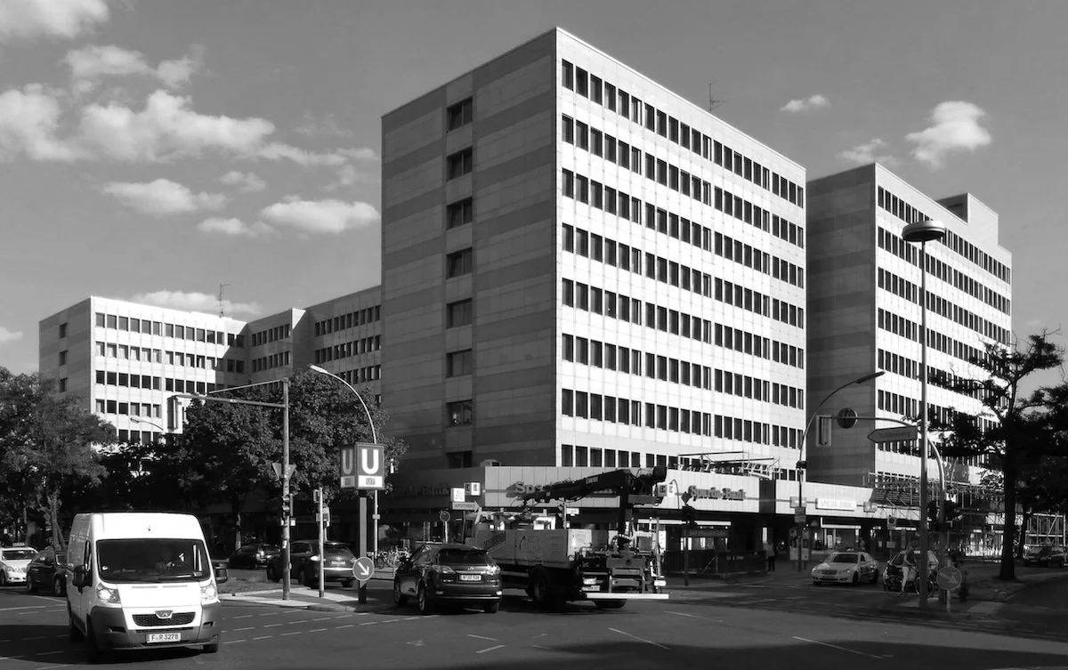 Офісны будынак на плошчы Эрнста Ройтэра, 6 у Берліне пабудавалі ў 1973-74 гг. Падчас рэканструкцыі вырашылі нічога прынцыпова не перарабляць. Ён проста выглядае так, нібы яго памылі. Захаваліся стужачныя вокны – падобныя на вокны гродзенскага Дома быту. У іх прыгожа адлюстроўваецца навакольны горад. Гродзенскі будынак можна таксама “адмыць”.