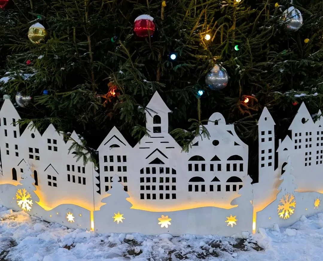У Лідзе, акрамя галоўнай навагодняй ёлкі, якая знаходзіцца на Дажыначнай плошчы, у цэнтры горада ўсталявалі новыя светлавыя арт-аб’екты.