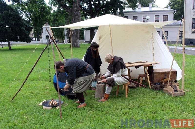 Увечары першага дня рэканструктары ўжо пачалі выбудоўваць лагер каля Новага замка. Ужо тады гараджане маглі пазнаёміцца з некаторымі гасцямі. Для большасці рэканструктараў гэта не першы побыт у Гродне – яны ўжо былі тут у снежні 2016 года.