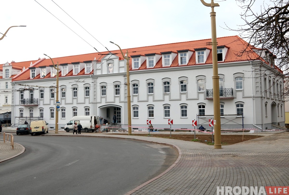 У будынка, які знаходзіцца на вуліцы Калючынскай, 23, пакуль гатовы толькі фасад. Аб’ект плануюць здаць цалкам да верасня. Там павінен адкрыцца рэстаран «Хотей» і апарт-гатэль.