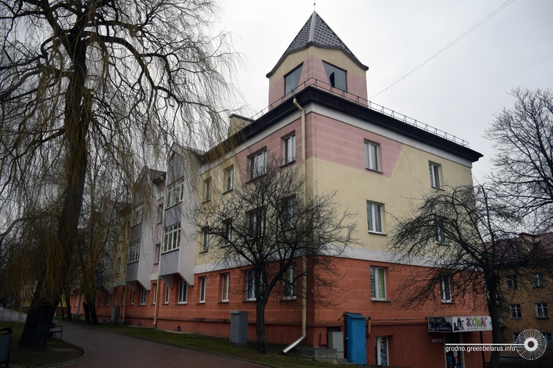Напрыканцы вуліцы Пушкіна, ужо на скрыжаванні з Горкага, гэтая «лесвічка» як бы сканчаецца адмысловым дзевяціпавярховікам. Гэтая пабудова — адзін з першых у горадзе (разам з падобнымі на вул. Захарава і Сав. Памежнікаў) высотных жылых дамоў, і адзін з першых, дзе быў усталяваны ліфт.