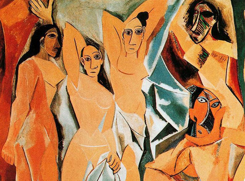 Мяркуюць, што сюжэт “Авіньёнскіх дзявіц”, з якога пачалася новая плынь жывапісу, навеяны бардэлем барселонскага Гатычнага кварталу з вуліцы Каррэр д’Авіньо. Першапачаткова карціна мела назву “Філасофскі бардэль”. На палатне – пяць аголеных жанчын, напісаных у рознай манеры.