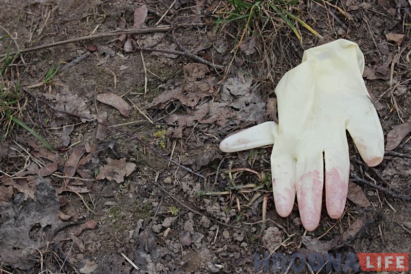 Адзінае, што цяпер нагадвае пра забойства каля дома, гэта скрываўленыя пальчаткі каля месца злачынства, якія, магчыма, пакінуў нехта са спецыялістаў.